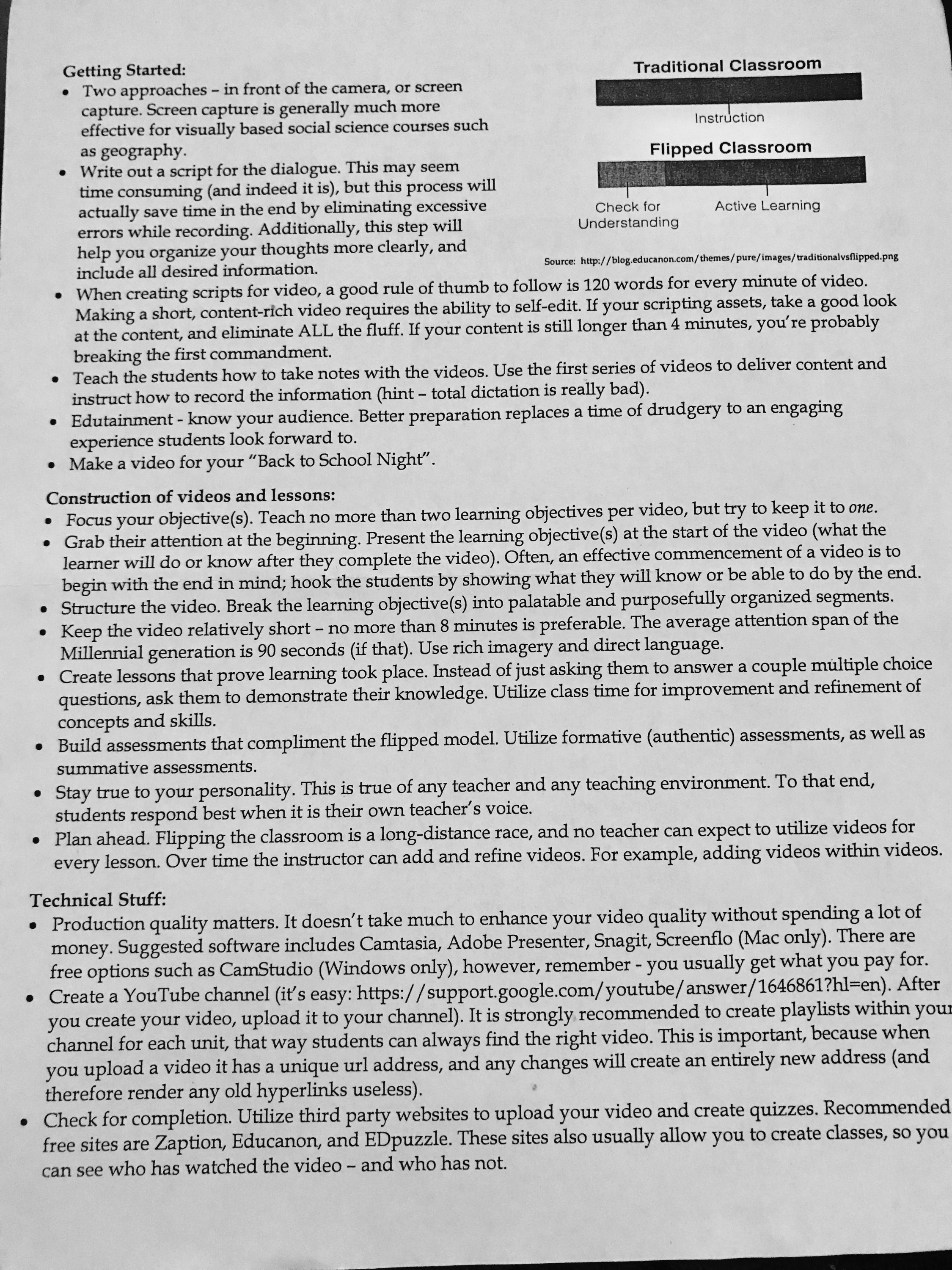 The truth is, I am leaning towards assigning more short videos to my kids for homework. But no, the videos I intend for students to view do not have my face, voice, or lecture notes in them. I want them to see real-world applications that I simply do not have time for in class. I still need them to read base materials, but I also need to buy some time for them to see the good stuff. 5-10 minute videos that they can watch after eating their lunch, or even before school. Aside from the open-note reading checks that I do with the kids (reading quizzes) after each homework assignment, I need to start incorporating FRQ questions (a part A or B only) using the real-world application videos. The reason I sat down at Daniel’s table was to find out how he is leveraging the system in his classes. He told the group that he still has his kids read the textbook on top of watching the videos and use guided worksheets to complete homework. Daniel said that if done right, your teaching will only get more difficult, not the other way around-and I have to agree. He said that he noticed a full point increase in his test scores since he began, and he swears by it. Every teacher and school in America has different needs, situations, learning methods, and teaching styles. With so many variables, the flipped classroom may or may not be right for you. If you need a good example-Daniel Snyder of Pine Crest High School is the man. I snapped a photo of his handout that he distributed at his table-it is chocked full of great information on flipping the classroom, check them out below.