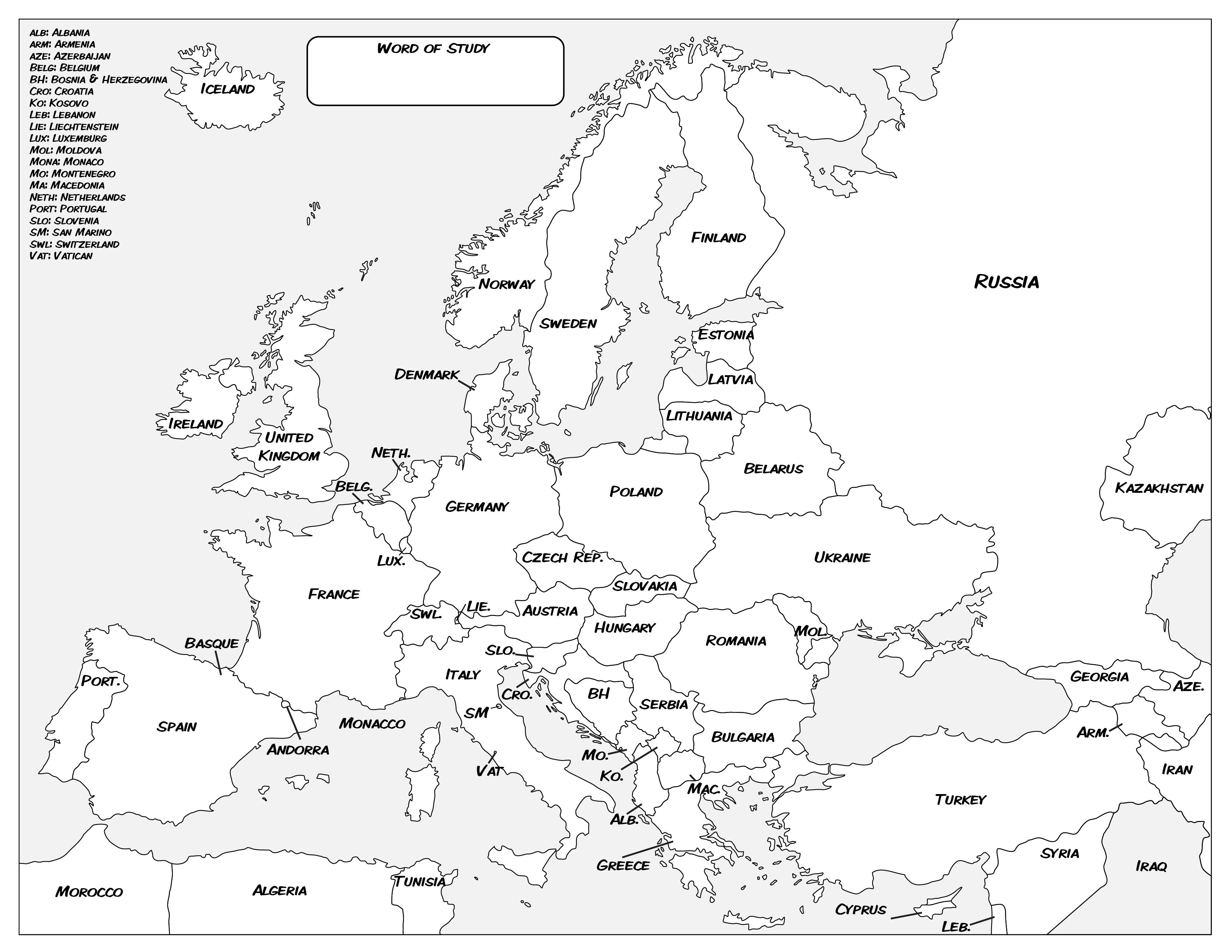 Students will open Google translate and begin translating their word. Students should write down the word in or near the country that it represents. If they need to slightly diagram the word outside of the country because of space limitations, that is OK. Discourage them from writing small countries’ words in the margins, as they will lose the ability to recognize language shifts across the continent. Have them recognize any patterns of words, either by spelling, pronunciation, or characters that are used by placing them in clumped isoglosses.